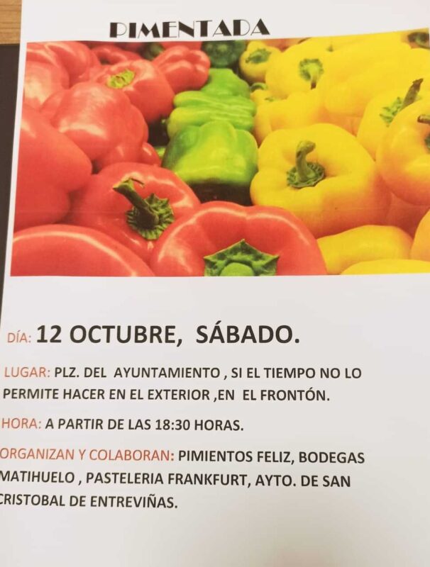 La plaza del Ayuntamiento de San Cristóbal de Entreviñas acogerá el próximo sábado 12 de octubre la ya habitual pimentada. A partir de las 18:30 horas se organiza la jornada de exaltación del producto estrella de la huerta en la céntrica ágora y en caso de que el tiempo lo impida, se trasladará al frontón.