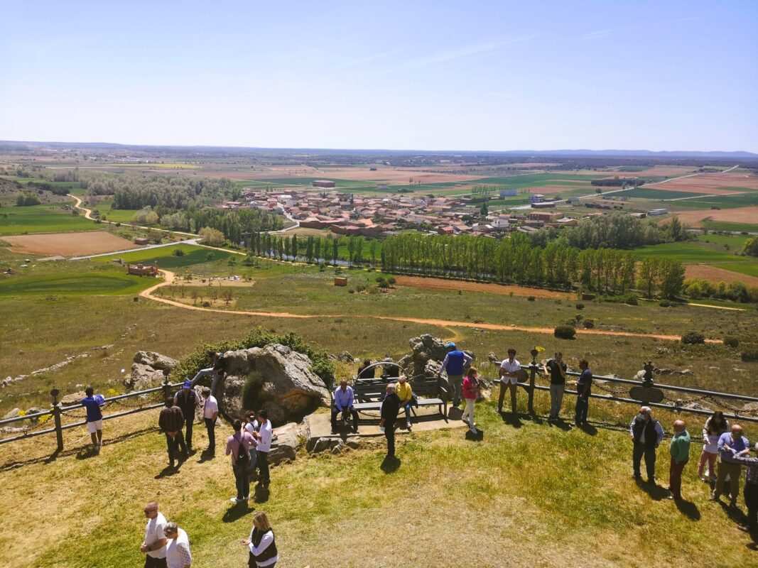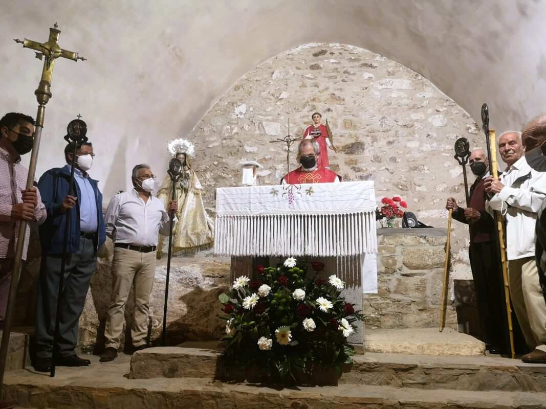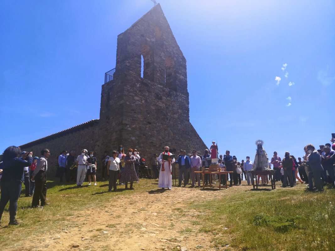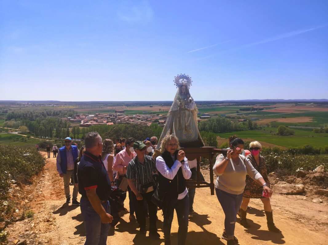 Y cuando el sol manifestaba todo su vigor, al marcar el reloj las 13:00 horas, la imagen del patrón cruzaba el pórtico del templo para enfilar una comitiva en dirección al cerro que lleva su nombre, a donde se alza su ermita. La procesión abierta con la cruz guía, señalaba el camino romero tras atravesar el arroyo Almucera para ascender hasta la platea de San Esteban mientras los sonidos de la agrupación musical «los Jatas», de Arrabalde, apaciguaban el incesante disparo de cohetes dejando una estela en el limpio cielo. Ya en la cumbre rocosa, donde se asentó un antiguo poblado, el párroco Miguel Hernández bendijo la campiña en nombre del patrón.
