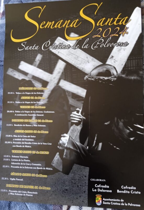 A las 22:30 horas del Sábado Santo está prevista la celebración religiosa más importante de la iglesia católica, la Vigilia Pascual. Y con la procesión del Resucitado, el Domingo de Pascua a las 13:00 horas, y la misa solemne, se cierra el abanico de actos de la Semana Santa en Santa Cristina de la Polvorosa.