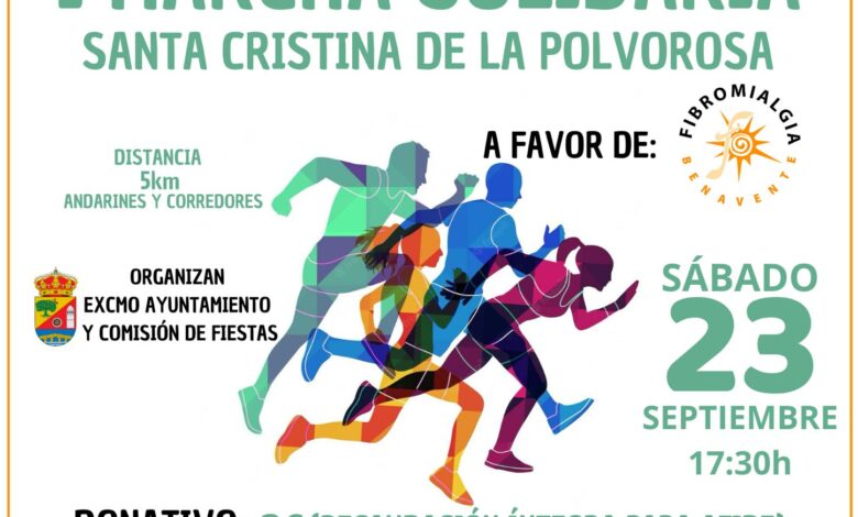 El próximo sábado 23 de septiembre se celebrará en Santa Cristina de la Polvorosa la I Marcha Solidaria a favor de la Asociación de Fibromialgia y Fatiga Crónica de Benavente.
