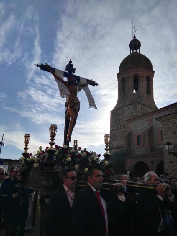 La imagen del Bendito Cristo de la Vera Cruz desfilando en Santa Cristina de la Polvorosa
