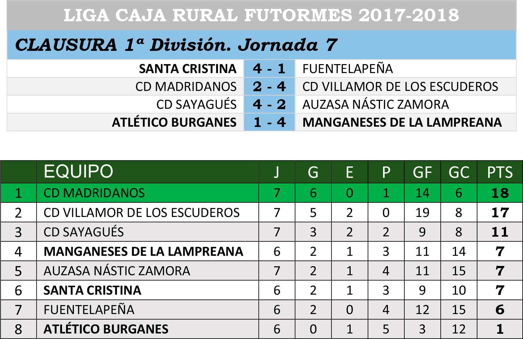 Se aprieta la cabeza en el Tornedo de clausura de la Liga Caja Rural Futormes tras los resultados habidos durante este fin de semana donde Santa Cristina y Manganeses de la Lampreana, equipos de la comarca benaventana, consiguieron sumar sendas victorias aunque el equipo de la zona de la Lampreana lo hizo a costa del Atlético Burganes. La jornada vivía el duelo entre el primero y el segundo clasificado donde el líder Madridanos que no había caído en esta ronda y se veía sorprendido en su feudo por el Villamor de los Escuderos. Así por lo tanto queda mucha tela que cortar en la cabeza de este grupo.