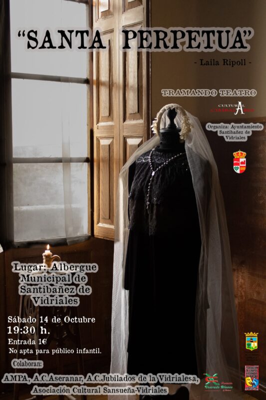 El salón del albergue municipal de Santibáñez de Vidriales acogerá este sábado 14 de octubre la representación teatral de la obra «Santa Perpetua» a cargo del grupo Tramando Teatro. La puesta en escena de la autora Laila Ripoll, a las 19:30 horas, viene de la mano de este grupo teatral bañezano de la Asociación Cultural Cimbalaria