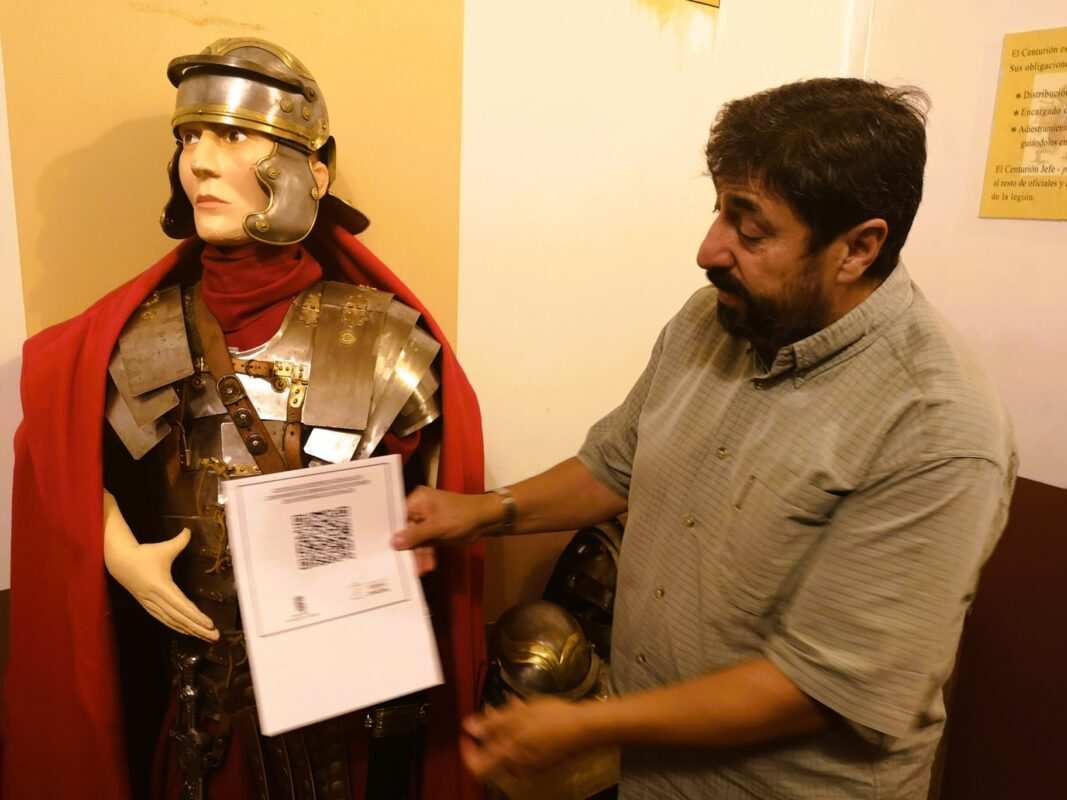 El gerente de ServiOcio Siglo XXI, José Fernández, muestra en el Centro de Interpretación uno de los códigos QR de los lugares a visitar