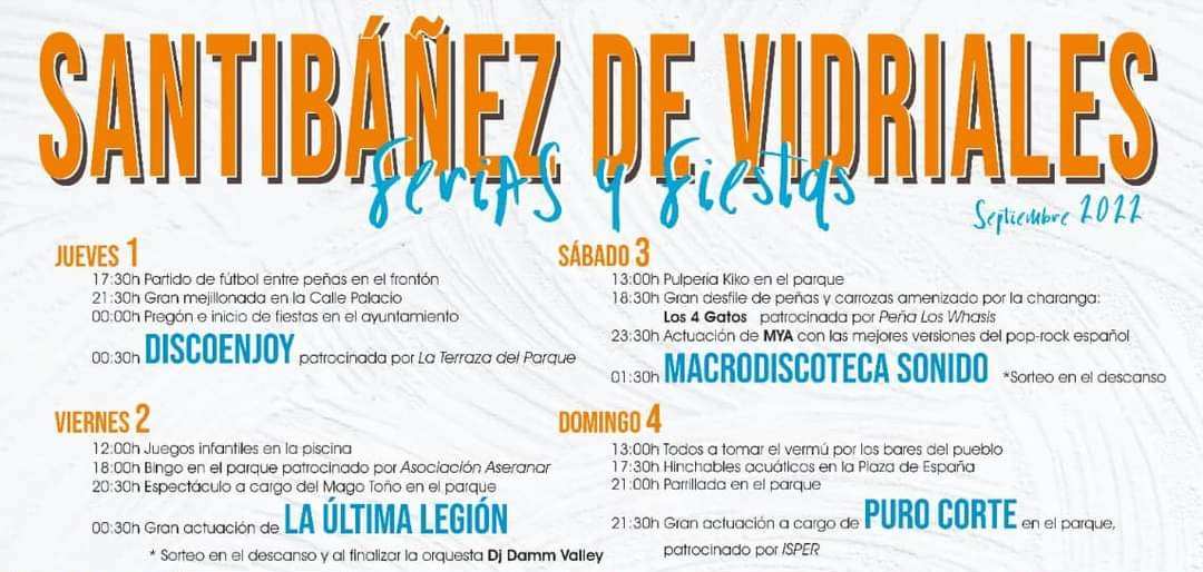 Las Ferias y Fiestas de Santibáñez de Vidriales se prolongan hasta el domingo y este viernes, tras el concurso de bingo y el espectáculo ofrecido por el mago Toño, la noche hará vibrar a Santibáñez con la verbena a cargo del grupo musical La Última Legión y para finalizar, ya de madrugada, con el dj. Damm Valley.