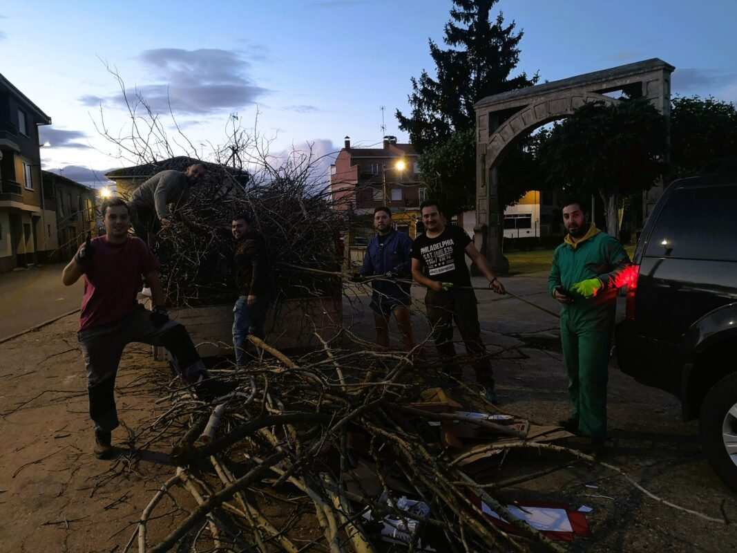 Un grupo de jóvenes preparaba al atardecer de ayer la leña para el encendido de la hoguera de San Juan