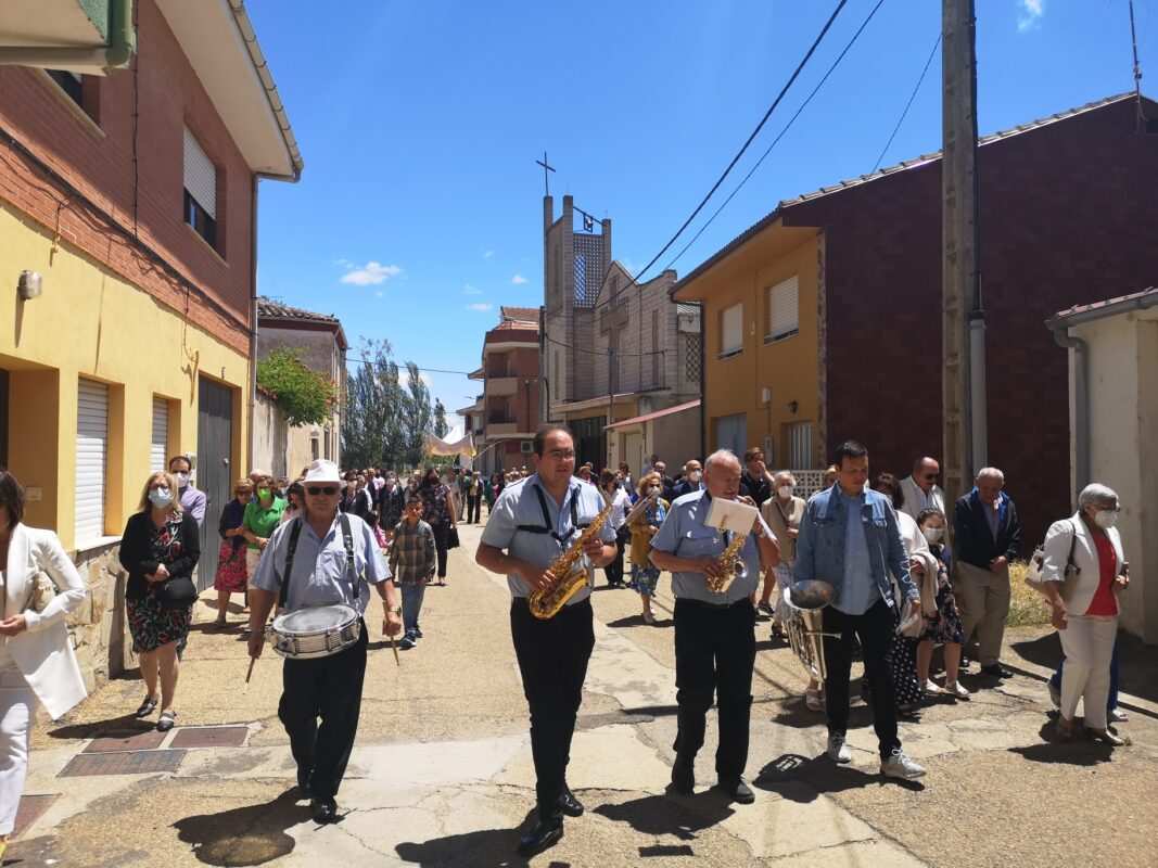 Los vecinos de Santibáñez de Vidriales celebran estos días las fiestas en honor a su patrón, San Juan Bautista. Tras la verbena de ayer jueves y el encendido de la hoguera bajo el Arco de El Ferial, en la jornada festiva de este viernes 24 de junio se celebró la misa y procesión con el Santísimo por las calles de la localidad a los sones de la banda música Los Marinos.