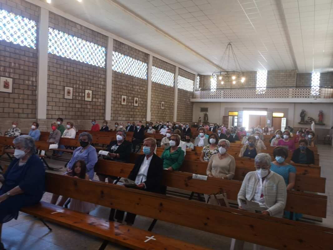 Tanto el párroco Miguel Hernández como el sacerdote, hijo del pueblo, Pedro Centeno, oficiaron la ceremonia en la que participó una nutrida representación vecinal en una iglesia ornamentada de flores con mimo. Al igual el acceso al templo revestido de flores silvestres, llenando de fragancia el lugar.