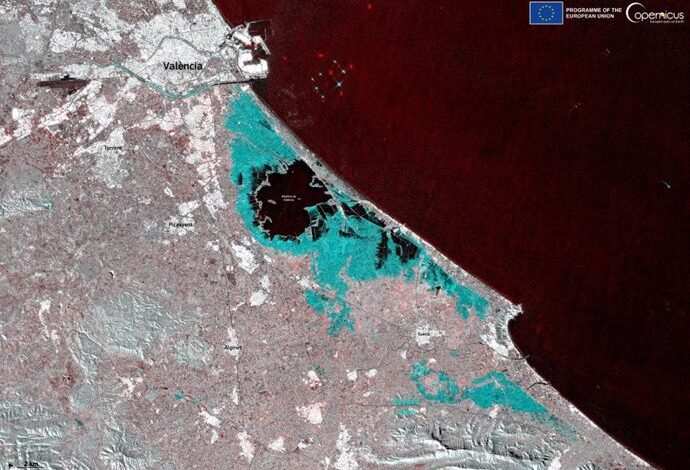 El satélite Sentinel 1 muestra el alcance de las inundaciones en Valencia