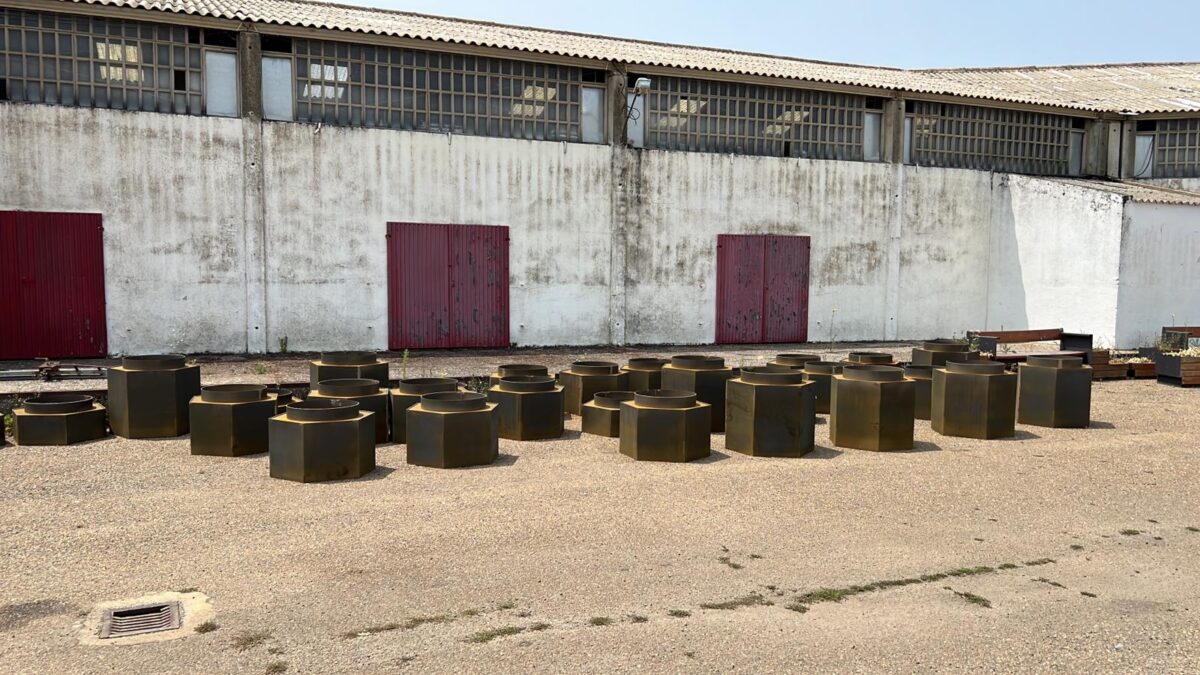 Junto a las grandes letras previstas de instalar en el ágora central por el anterior equipo de gobierno se instalarían también 32 jardineras. Tanto las letras como las jardineras metálicas se encuentran depositadas en el antiguo Mercado de Ganados con el fin del proceso de oxidación y aplicar el barniz.