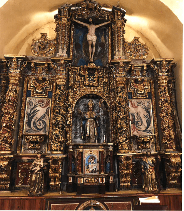 Entre los años 1763 y 1770 se realizaron obras de reconstrucción del templo y fue cuando se doró el retablo mayor, siendo párroco Juan Cantón. Esta estructura de madera está presidida en el ático por un Crucificado que se asienta sobre tres cuerpos con hornacinas en las que se ubican las esculturas de bulto de San Julián en el centro y a los extremos San Blas y San Antón. Una leyenda grabada sobre una media naranja del retablo señala: «REEDIFICATA FVI A FUNDAMENTIS ANNO DOMINI MDCCLXIII ET CONCLUSA IN NOMINE VIRGINIS Mº. RECTORE CANTON. MAIO 30 DE 1770».