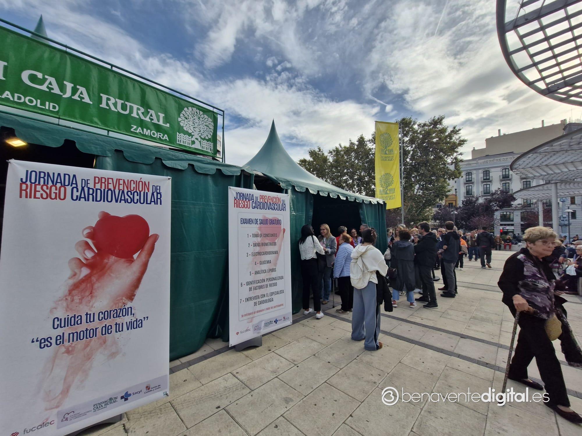 El Servicio de Cardiología del Complejo Asistencial de Zamora superó con creces las expectativas de ciudadanos interesados en realizarse las pruebas de prevención del riesgo cardiovascular en la carpa instalada este sábado 5 de octubre en el parque «La Marina» de la capital zamorana., como ya adelantó Benavente Digital. Por esta carpa pasaron, mañana y tarde, los ciudadanos superando el cupo previsto de 300 personas para hacerse con las pruebas gratuitas.