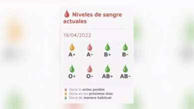 En rojo las reservas de sangre de los grupos A- y 0- y A+ vuelve a naranja