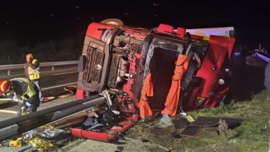 Peligroso vuelco de un camión en la A-52: carril cortado hasta el lunes