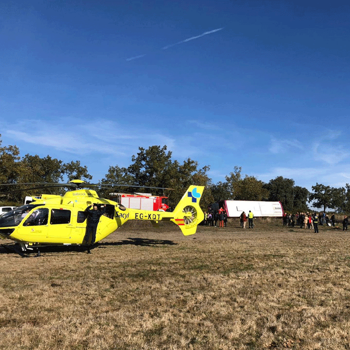 Tres heridos al volcar un autobús en Fariza de Sayago