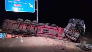 Un camión de gran tonelaje volcaba esta noche en la A-52 con dos personas en su interior que han salido ilesas de este accidente. Los bomberos de Rionegro del Puente…