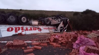 Un camión cargado de ladrillos esparce todo el material sobre la autovía