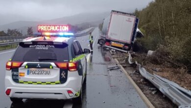 Cortado un carril de la A-52 por la colisión de un turismo y un camión