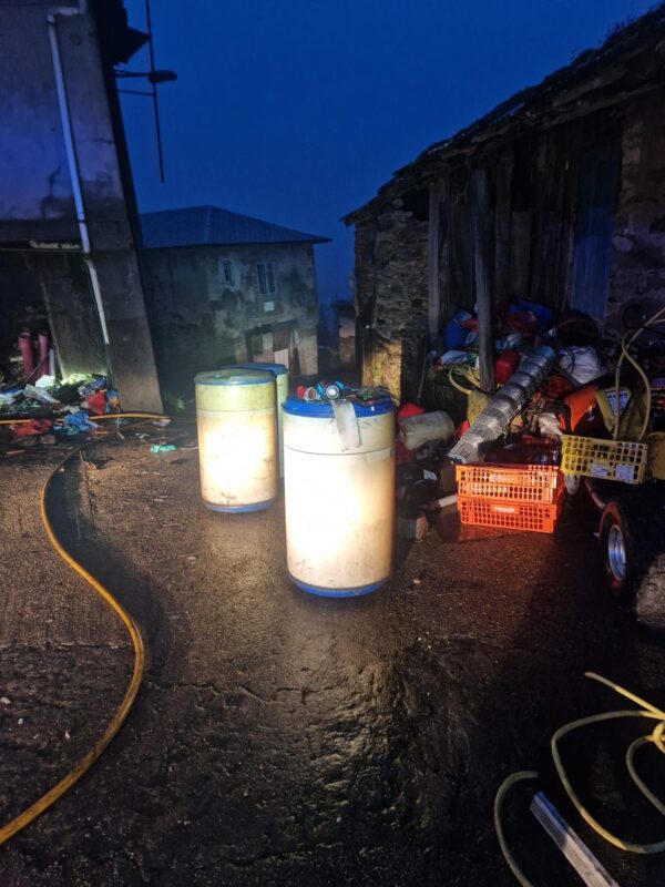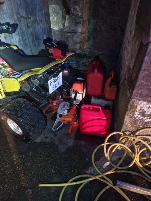 La vivienda contaba con mucha leña apilada y depósitos de combustible.