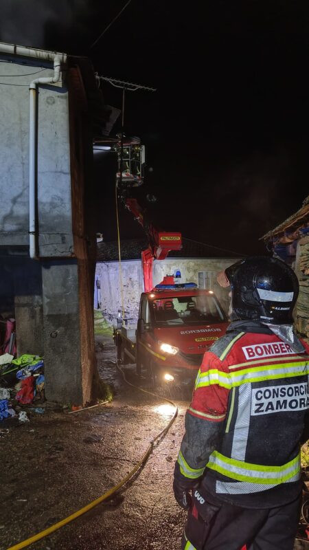 Efectivos del Parque de Bomberos, con base en Rionegro del Puente, intervinieron en la tarde de este viernes en los trabajos para sofocar las llamas de un incendio en una vivienda en San Ciprián de Hermisende, sin que se produjesen víctimas mortales.