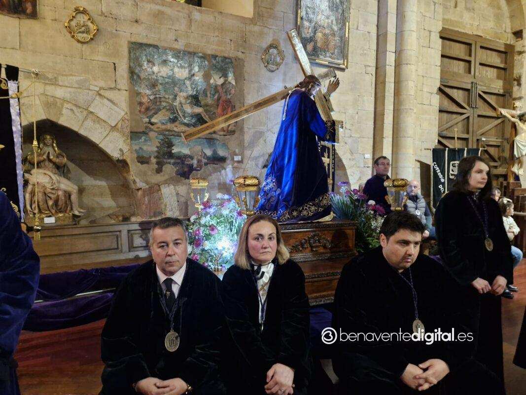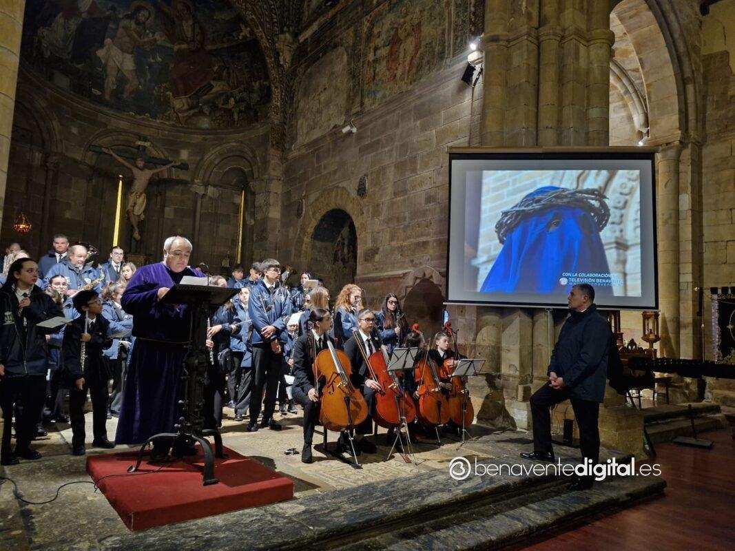 Aún así, la fe y el compromiso con la tradición persistieron, encontrando una nueva vía de expresión en el interior de la iglesia de San Juan del Mercado. El programa alternativo concebido por la cofradía se convirtió en un oasis de espiritualidad en la noche lluviosa. Se proyectaron vídeos de procesiones pasadas, producidas por Televisión Benavente, que mostraron a todos los presentes las imágenes que originalmente habrían desfilado por las calles.