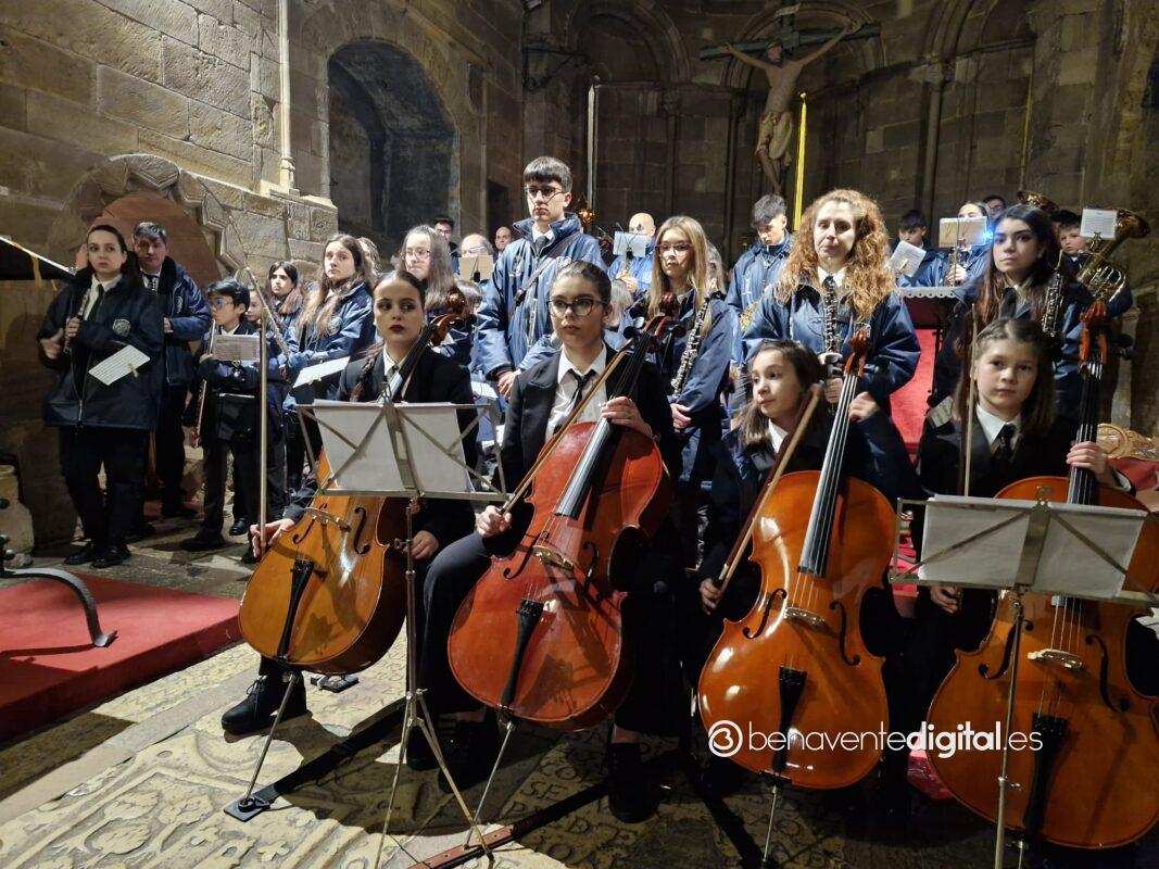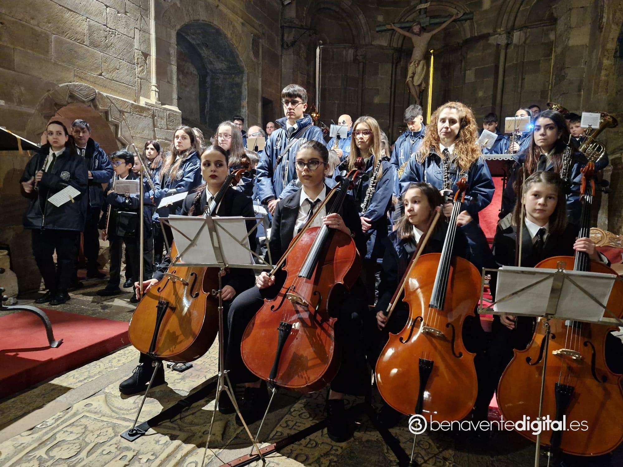 Acompañando estas imágenes se organizaron seis momentos de meditación y poesía, un pasaje para cada uno de los pasos que originalmente habrían desfilado por las calles: la Santa Vera Cruz, la Oración en el huerto, el Ecce Homo, Jesús Nazareno, el Redopelo, y la Virgen de la Soledad. En la penumbra del recinto sagrado, cada oración y poema resonó con un eco de reverencia y reflexión, acompañado por los acordes solemnes de la banda de música Maestro Lupi.