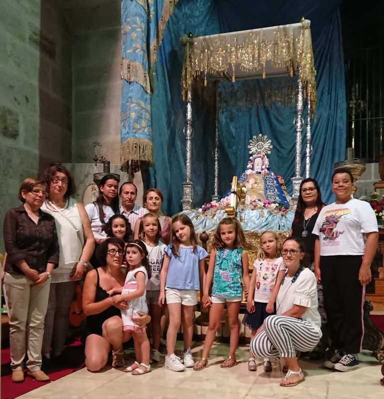 Igualmente el párroco, pensando en los terracampinos que quizá todavía no conocieran la leyenda, hizo referencia a “los dos misteriosos peregrinos (¿ángeles tal vez?) que, tras fallidos intentos de otros escultores, lograron reproducir a la perfección una copia de la Virgen dormida de Gandía”. Añadía: “mucho suspiró por ver cumplido este sueño la que fue abadesa en el año 1619, Sor Ana de la Cruz, empeñada en dejar dicha copia de la Virgen de su tierra como regalo a este Monasterio, antes de emprender su regreso”.