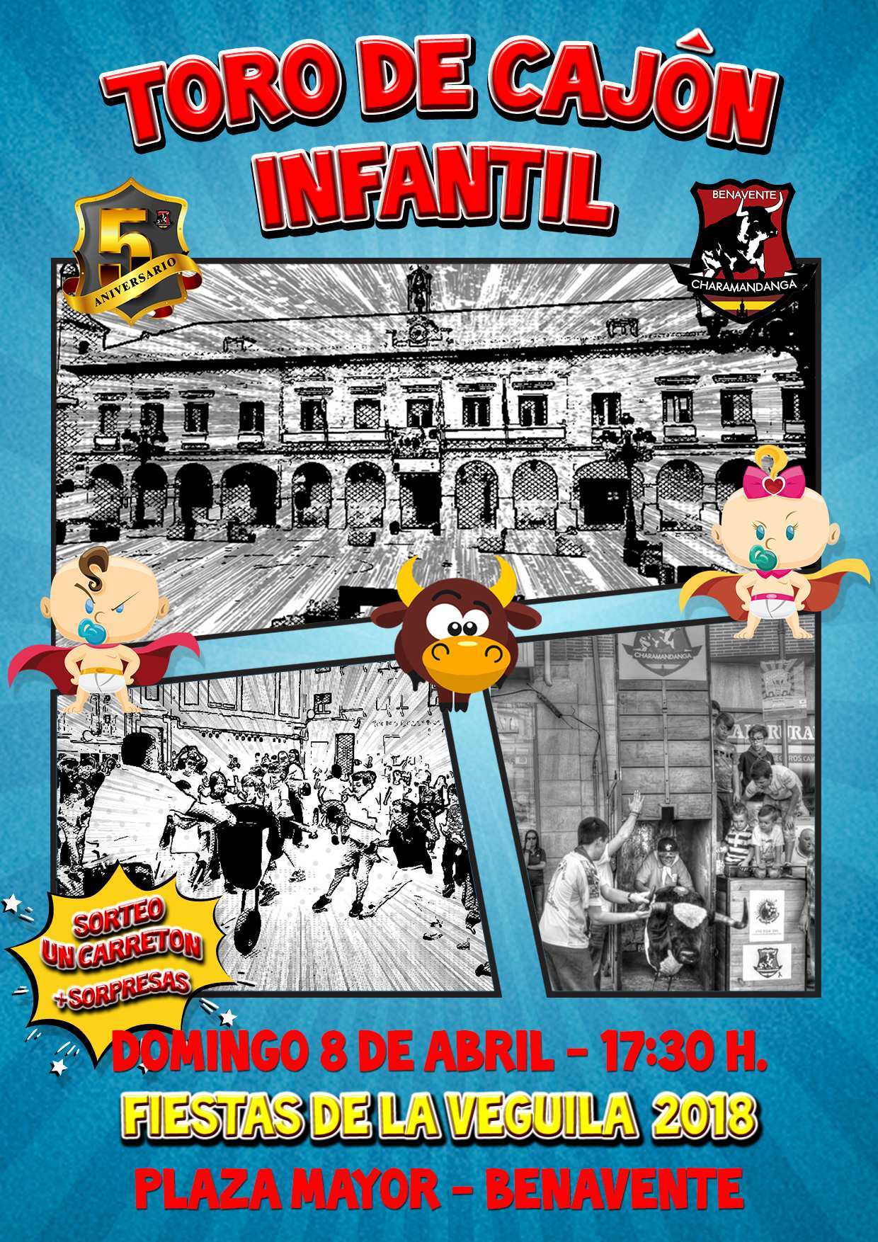 Un año más, la Asociación Benéfica Taurina Charamandanga celebrará este domingo 8 de abril el ya tradicional Toro de Cajón Infantil en las Fiestas de La Veguilla de Benavente. Esta actividad comenzará a las cinco y media de la tarde en la Plaza Mayor de la ciudad y contará con el sorteo de un carretón infantil, regalos y sorpresas.