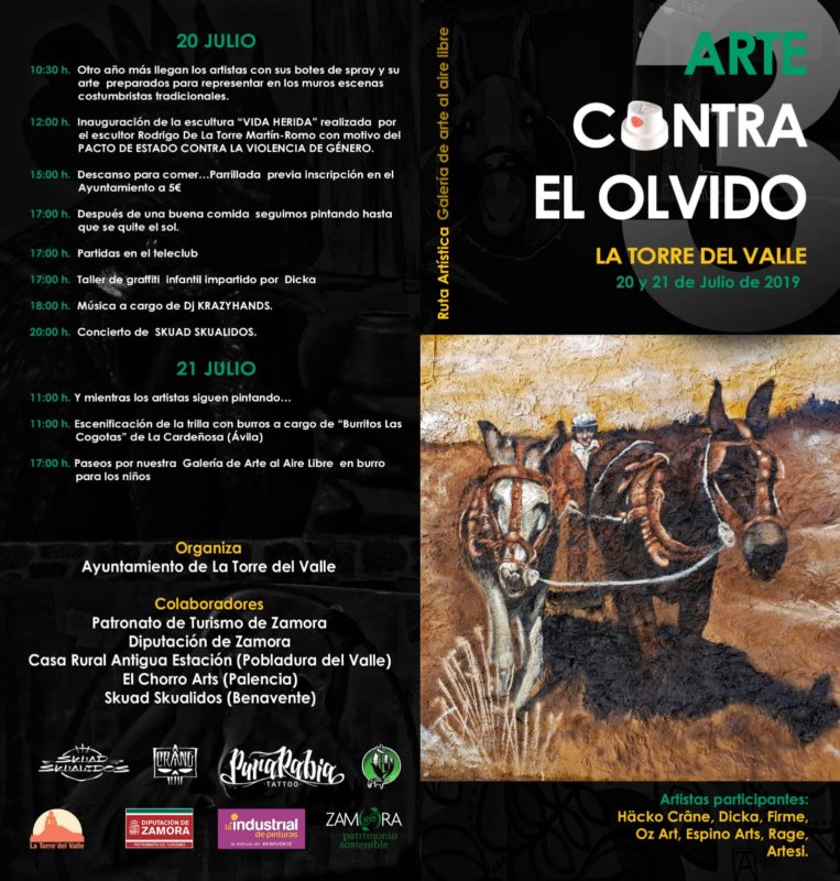 La Torre del Valle acogerá el próximo fin de semana la tercera edición de la Ruta Artística Galería de arte al aire libre “Arte contra el olvido” con siete artistas participantes.