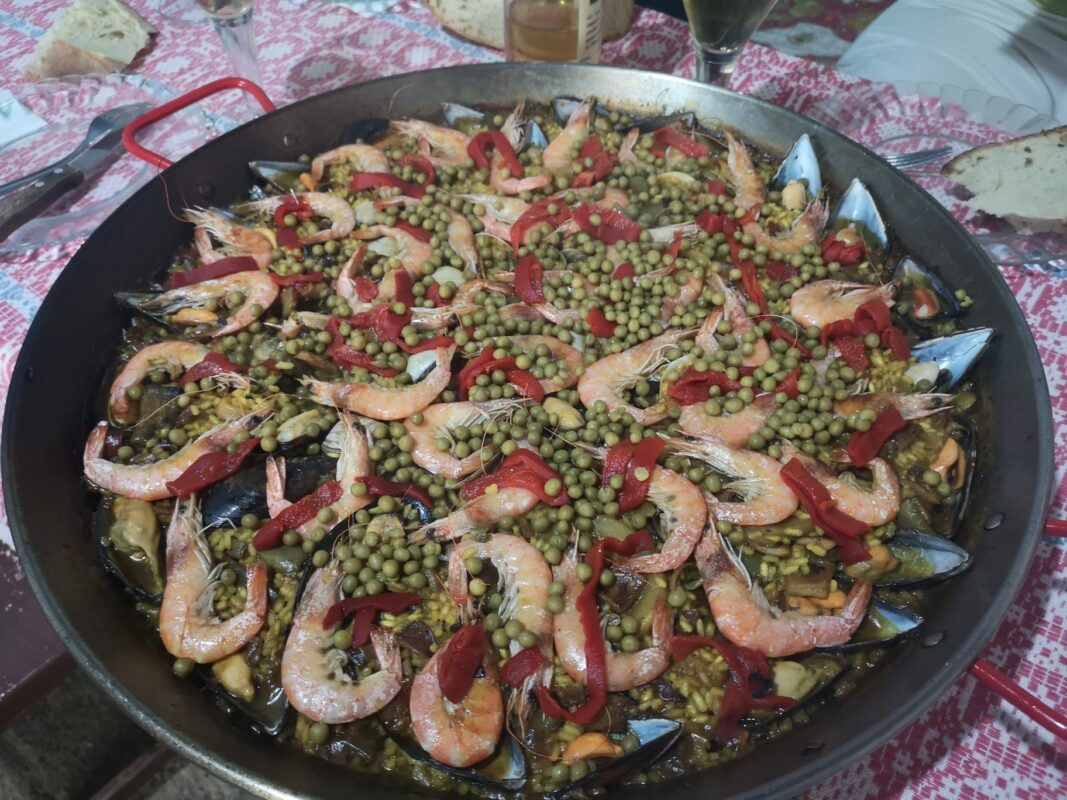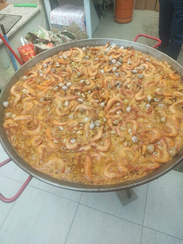Una generosa paella peparada para su degustación entre amigos