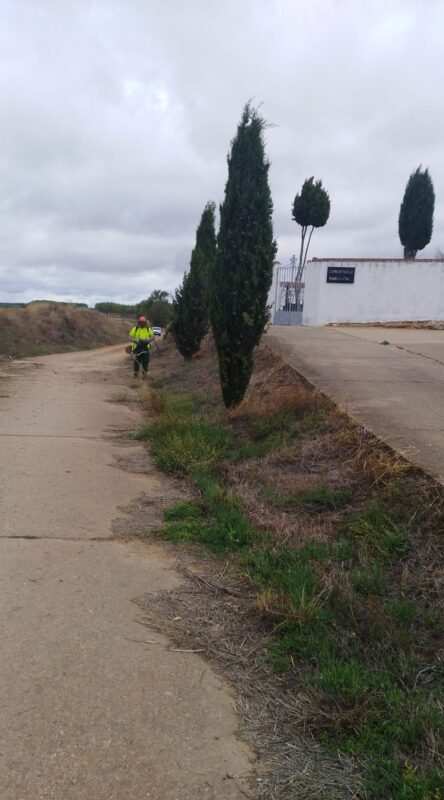 Bajo las directrices de su coordinadora, el grupo de trabajo realiza actuaciones de desbroce de la zona urbano forestal que se encuentra con maleza en los accesos a la localidad y en el casco urbano. Esta cuadrilla de trabajo retira la maleza con desbrozadoras de hilo para evitar riesgo de incendios en los lugares previamente diseñados por el Ayuntamiento.