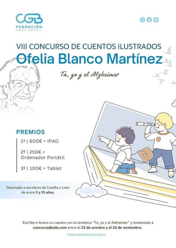 El VIII Concurso de Cuentos Ilustrados Ofelia Blanco Martínez, versado sobre “Tú, yo y el Alzheimer”, será está dirigido a escolares castellanos y leoneses de edades comprendidas entre 5 y 15 años.