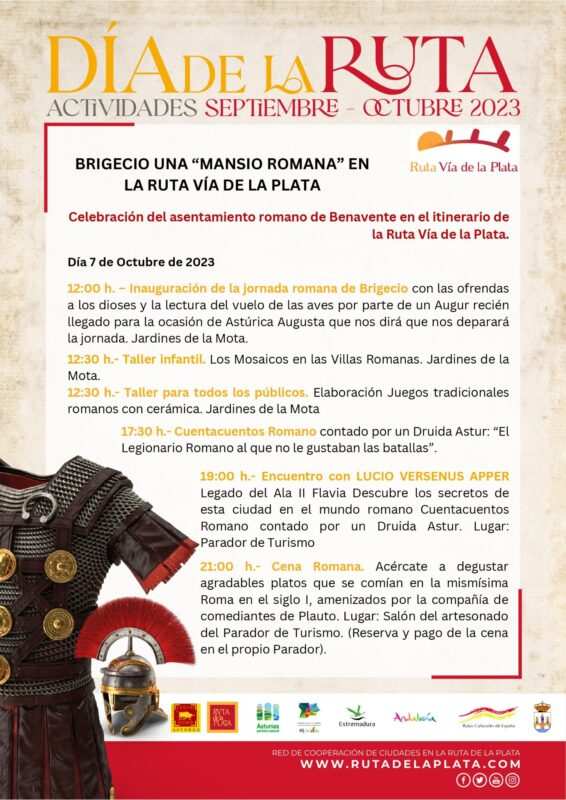 La Concejalía de Turismo de Benavente ha abierto el plazo de inscripción para las diferentes actividades del Día de la Ruta de la Plata a celebrar en la ciudad el próximo sábado, 7 de octubre. Las personas interesadas podrán apuntarse a taller de mosaicos romanos dirigido a niños y niñas de 6 a 14 años a partir de las 12:30 horas o al taller de elaboración de juegos tradicionales romanos con cerámica dirigido a todos los públicos desde las 12:30 horas. Por la tarde, se podrá disfrutar de un Cuentacuentos Romano a partir de las 17:30 horas y dirigido a todos los públicos.