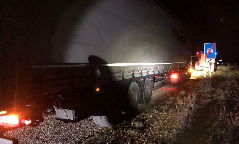 Los bomberos de Benavente recibieron dos llamadas de emergencia la noche del pasado lunes. A las 23,38 horas son avisados alertando de un incidente en el que está involucrado un vehículo que transporta mercancías peligrosas (pintura). El incidente se produjo en el kilómetro 6 de la A-52 en el término municipal de Manganeses de la Polvorosa. Al llegar al lugar verificaron que el vehículo había sufrido un reventón en una rueda del remolque sin que la mercancía sufriera daño alguno.