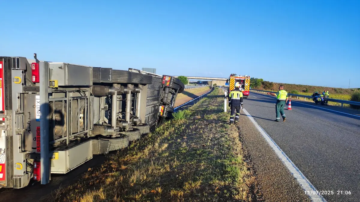En la llamada de aviso se comunicaba que el conductor se encontraba atrapado en el interior de la cabina, lo que motivó la rápida intervención de los Bomberos del Parque de la Zona Centro del Consorcio Provincial, con base en Zamora. Sin embargo, al llegar los equipos de rescate, el conductor ya había sido liberado y fue evacuado a un centro hospitalario por los servicios sanitarios.