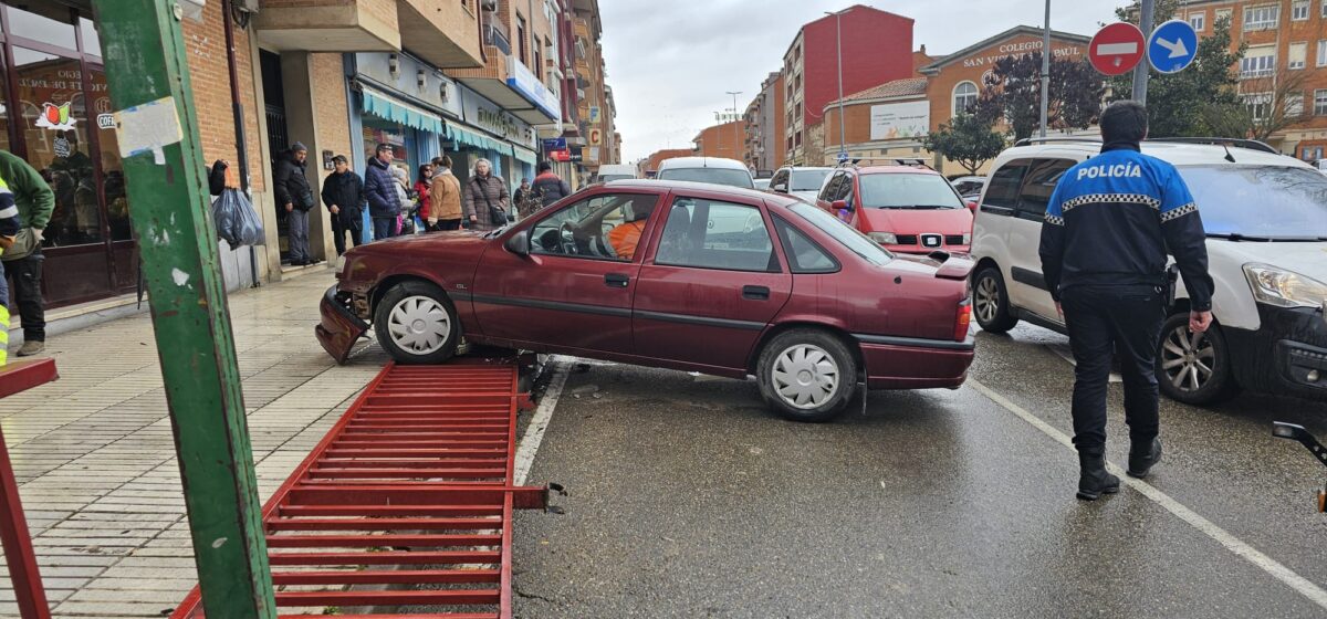 Un coche se empotra contra una valla en pleno centro de Benavente
