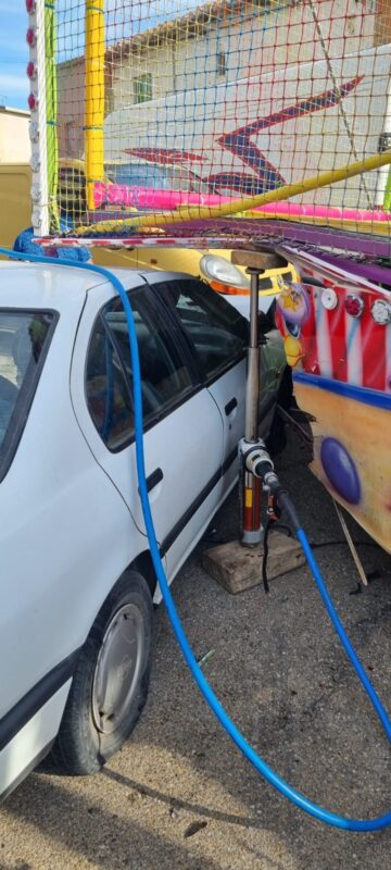 Un coche se mete bajo una atracción de feria en San Cristóbal de Entreviñas
