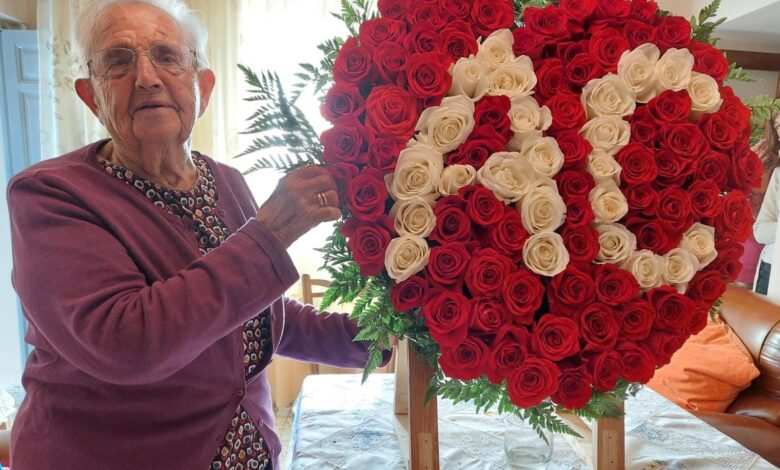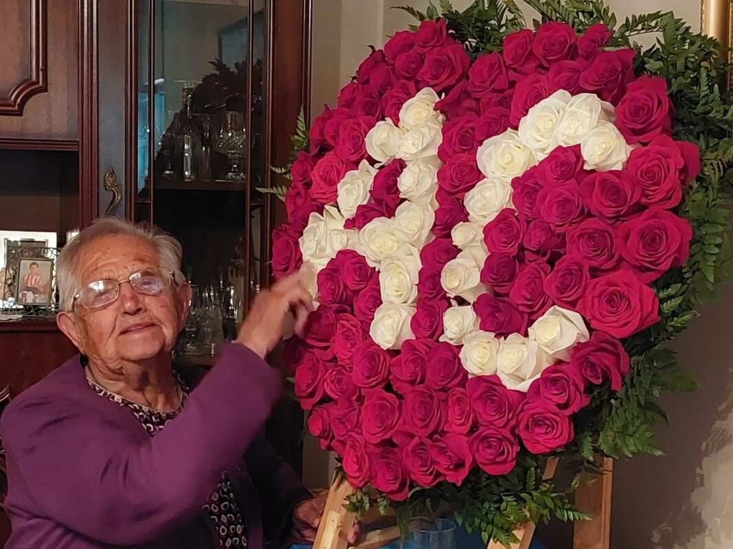 La villa de Cerecinos de Campos celebró este 29 de septiembre una jornada especial, su vecina más longeva, Teresa Rodríguez Blanco, cumplía 100 años con la vitalidad y alegría que le ha caracterizado durante toda su vida. La asociación cultural Ceres, de la que Teresa forma parte, le obsequiaba con un gran ramo de rosas rojas en forma de corazón y con el sello marcado de los pétalos blancos de este colectivo cultural.