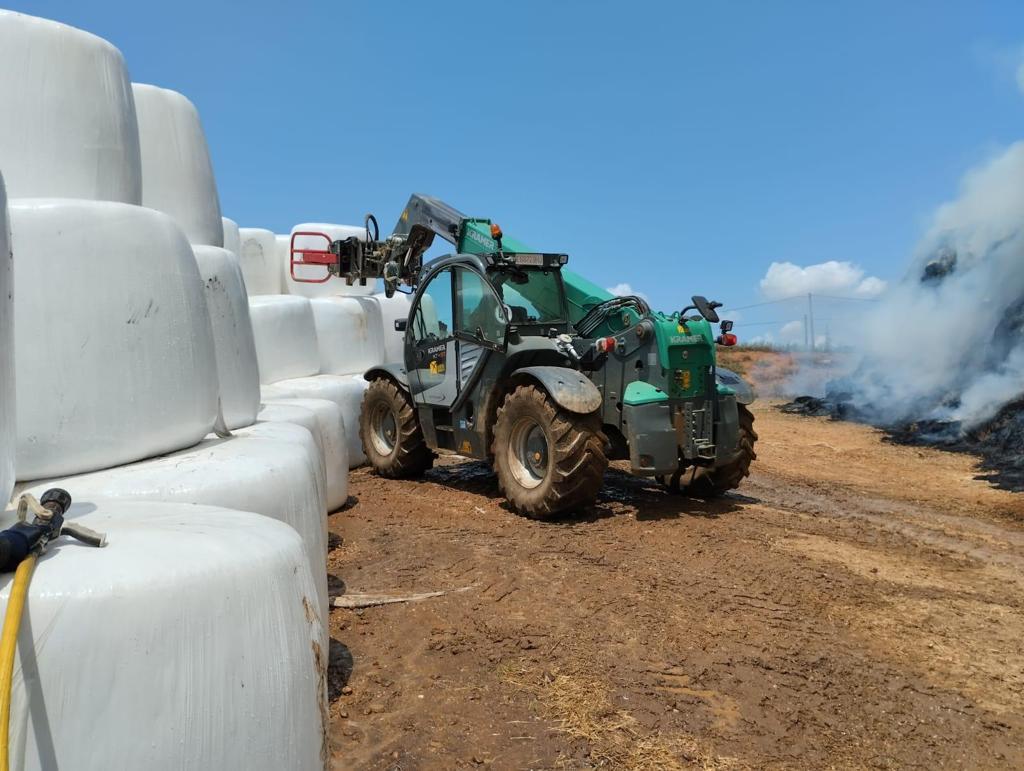 Sí que junto con vecinos y personal de la explotación ganadera han conseguido que el fuego no alcanzara el resto de pacas amontonadas en otras medas y que se encontraban próximas al lugar del incendio. Para tal fin, los trabajos han consistido en desviar lo más lejos posible el resto del forraje utilizando para ello máquinas para retirarlo y algún tractor para abrir cortafuegos.