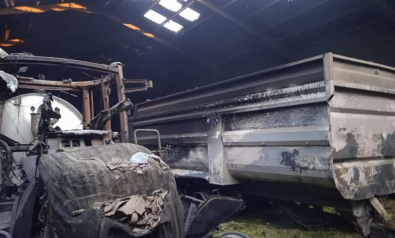 Los daños producidos por este incendio han sido cuantiosos al ser pasto de las llamas diversa maquinaria agrícola como tractores, palas, remolques y maquinaria del campo, varias pacas de alfalfa y parte del tejado de la nave. También una persona debió de ser atendida por los servicios sanitarios que se desplazaron con una ambulancia