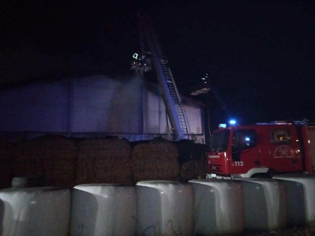 Guardia Civil de Camarzana, tres dotaciones del Parque de Bomberos de Benavente que desplazaron dos autobombas y un vehículo de altura, una dotación de Bomberos del Parque de Rionegro del Puente cumplimentaron el amplio operativo que finalizaba pasadas las 8,00 horas de la mañana de hoy sábado cuando se retiraba del interior de la nave el forraje que ocupaba un rincón de la misma.