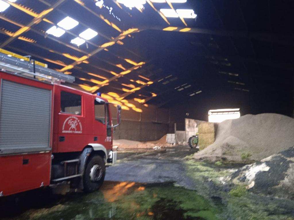 Llegados al lugar se iniciaron los trabajos de extinción que presentaban cierto peligro por la caída de varias partes de uralita que recubría el tejado por la temperatura registrada en el interior de la nave.