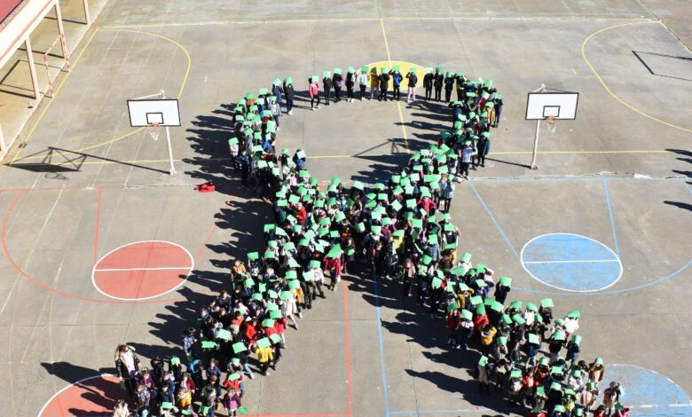 Un lazo humano de 300 alumnos abre los actos en Benavente por el Día Mundial del Cáncer