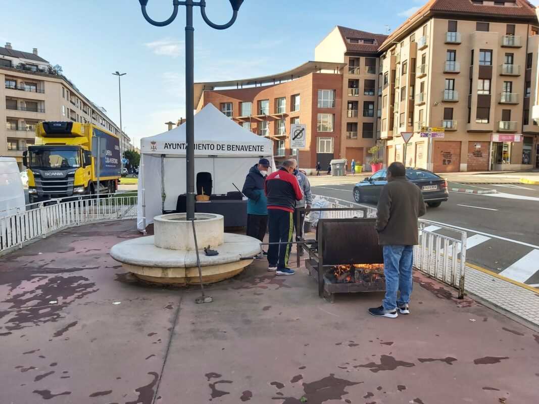 En la avenida de El Ferial de Benavente, junto a la rotonda, en las inmediaciones del edificio municipal, se organizó en la mañana de este sábado el magosto. Un evento que vino de la mano de la asociación Familias Numerosas de Zamora, el Centro de Estudios Benaventanos «Ledo del Pozo» y el Ayuntamiento.