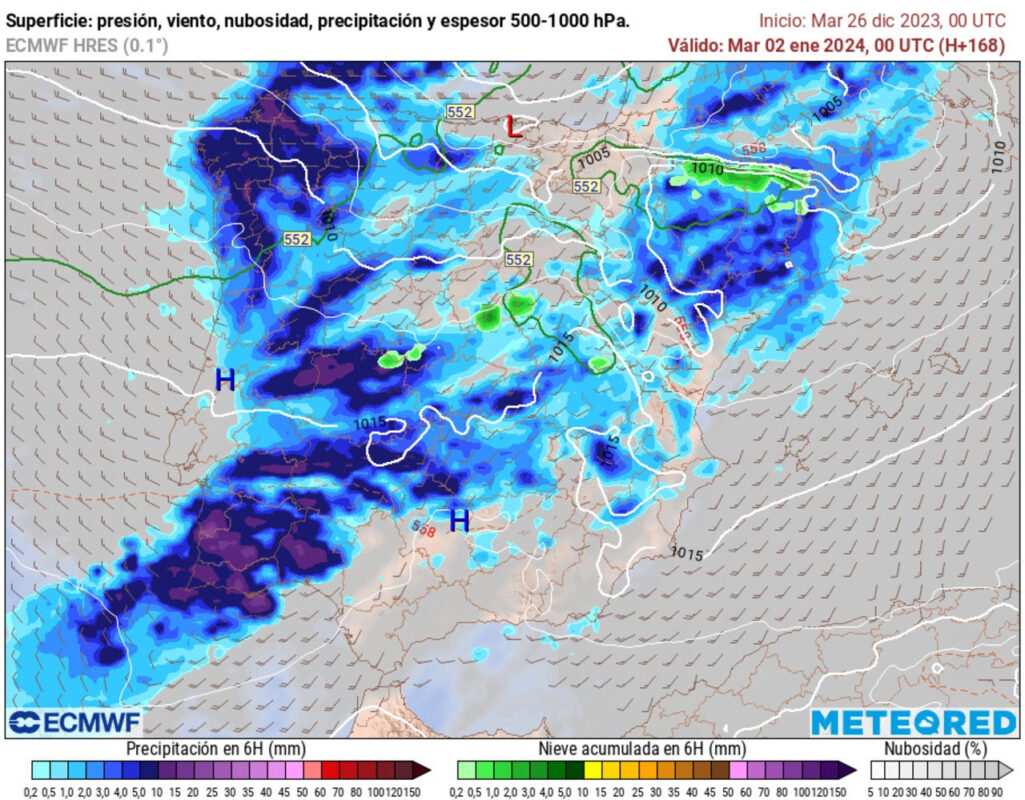 A pocos días de acabar el año, las previsiones para Nochevieja y Año Nuevo han cambiado drásticamente y una borrasca procedente de latitudes subtropicales podría dejar lluvia en bastantes zonas del país, tal y como explica Samuel Biener, experto de Meteored (tiempo.com).