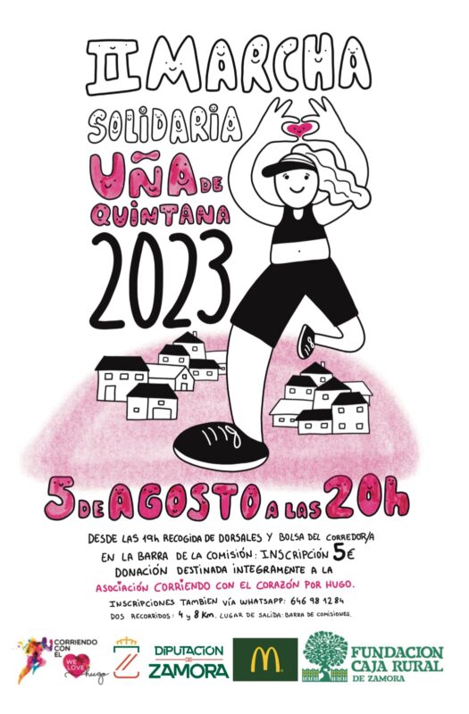La localidad de Uña de Quintana abre los festejos patronales en honor a los santos Justo y Pastor y a San Cayetano con una marcha solidaria en favor de la asociación «Corriendo con el Corazón por Hugo». Será el sábado 5 de agosto cuando se celebre la actividad benéfica con salida a las 20:00 horas y con dos recorridos, uno de 4 kms. y otro de 8 kms.