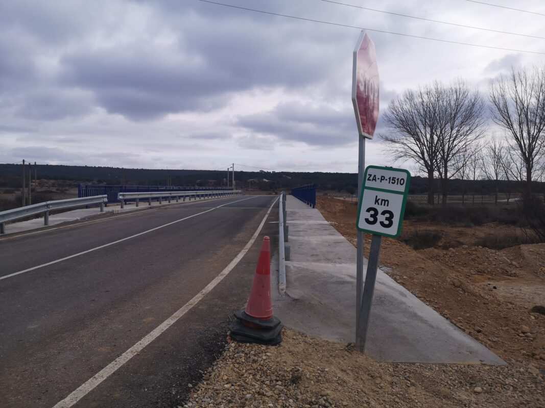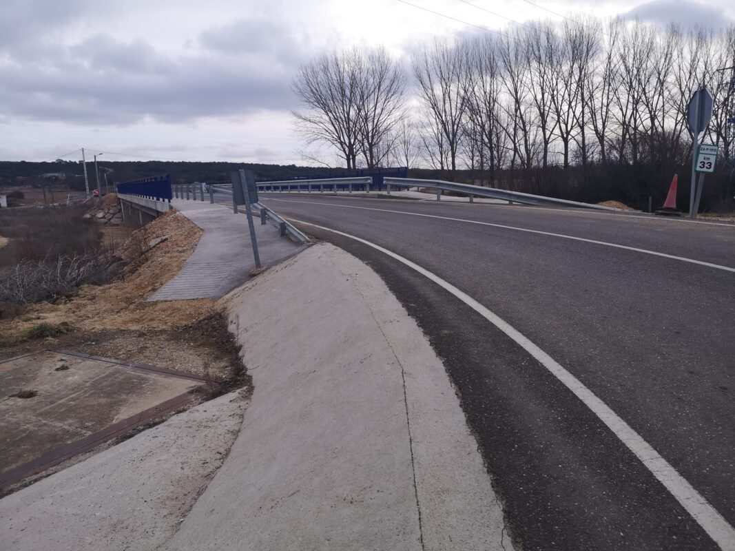 La intervención de obra ha consistido en la provisión de aceras en los entronques de la carretera, en ambos estribos del viaducto, y viene a permitir el paso de los vecinos por las aceras existentes entre las barandillas y biondas de ambos márgenes de la plataforma viaria.