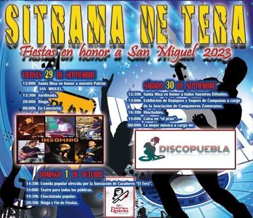 Ya en la jornada del domingo 1 de octubre, Sitrama de Tera comparte una comida popular ofrecida por la asociación de cazadores el Tera. Ya en la tarde se organiza una representación teatral, la degustación de una chocolatada y un concurso de bingo, poniendo el colofón a las fiestas de San Miguel Arcángel en Sitrama de Tera.