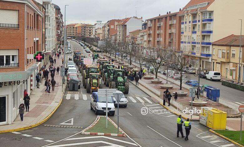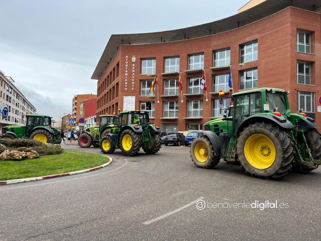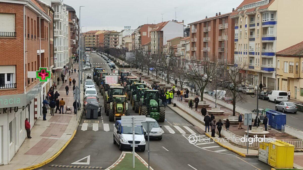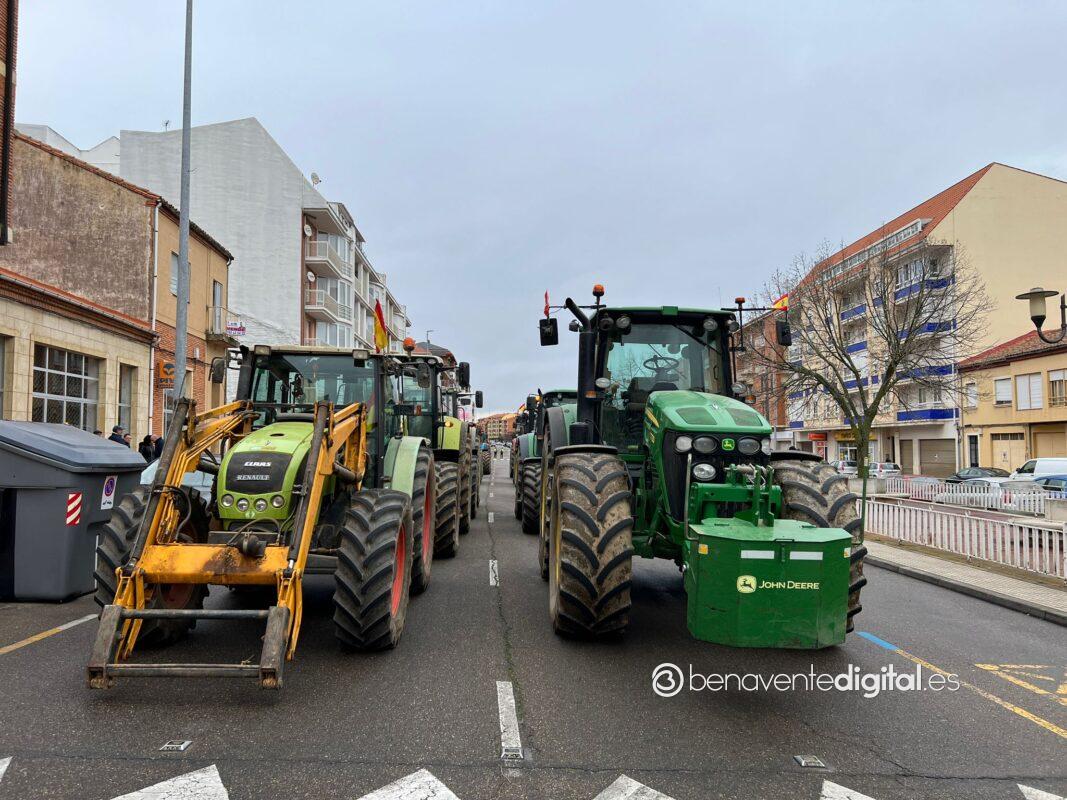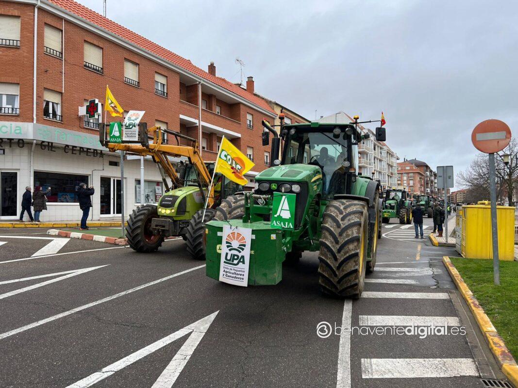 Una treintena de tractores de agricultores y ganaderos de la comarca secundó esta mañana la manifestación convocada en Benavente por las organizaciones profesionales agrarias, Asaja, Coag y Upa.