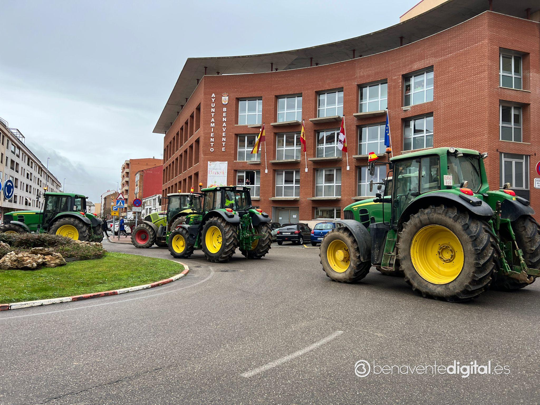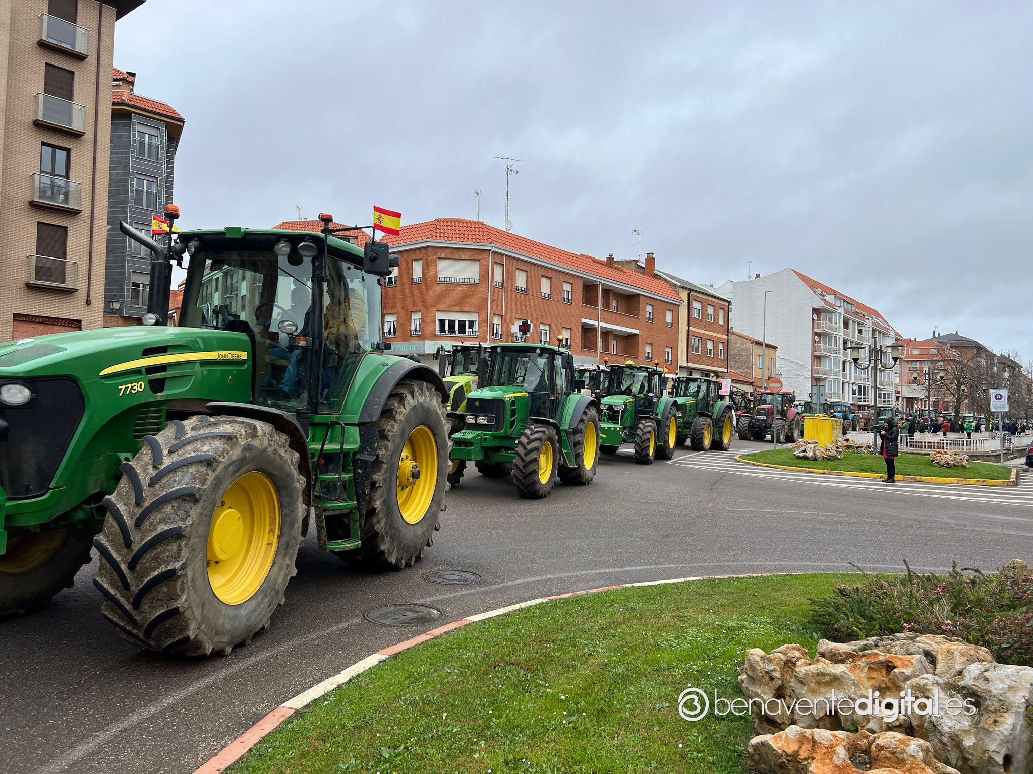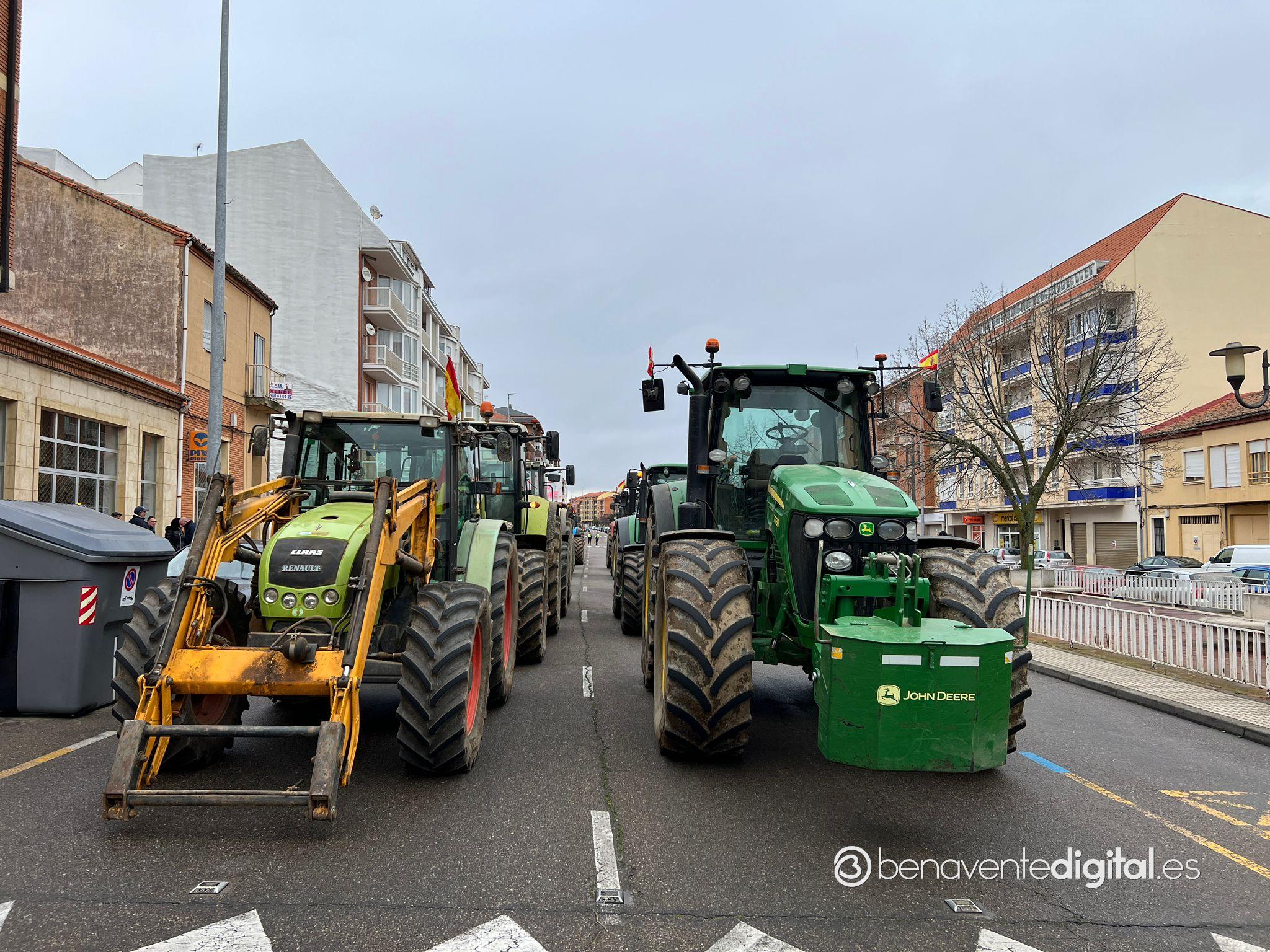 Una treintena de tractores de agricultores y ganaderos de la comarca secundó esta mañana la manifestación convocada en Benavente por las organizaciones profesionales agrarias, Asaja, Coag y Upa.